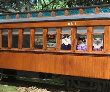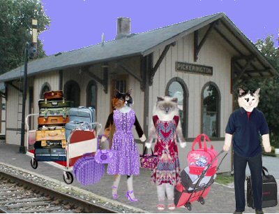 Page 8 Tooooot! Toooooot! E.T.: I see da station up ahead! Wow, I got all our luggage togeffur just in time! Ginger: I got one last cinnamon roll in my purse. Phelicity: I got so excited, I ate mine. Dere it is! Ginger: Okay, I called fur a taxi cab. Mew think one is gonna be enuff? Phelicity: I doesn't know, lookit all dis stuff! It's a good thing we's liddle. E.T.: How in da world could we get home wiff twice as much stuff as we took! Ginger: Well, we had some expanding bags to put da stuff we bought in! *mewgiggles* Phelicity: Thank mew efur so, E.T., we's so purroud of how good mew took care of all dis luggage! E.T.: Mew are welcome. I'm proud of mew girls, too. Mew boff got off da train wiff matching shoes on. Ginger: Oh, dat's cuz I found my other one in da pillowcase. I had such a fun time! Phelicity: An I gotted da one I left in da dining car. Oh, what a wonderpurr trip it was! E.T.: I enjoyed efury minit of it. Dis was a great vacation! Taxi: Honk! Honk! We'll be happy to get home, but we'll always rememfur our exciting train trip!
